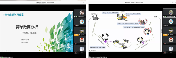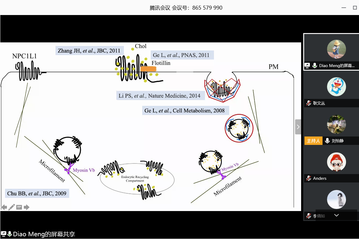 首先,基于近期阅读的文献,刁梦同志向大家介绍了NPC1L1介导小肠吸收胆固醇的机制。随着生活水平的提高,人们对生命健康越来越重视,胆固醇也越来越多地出现在公众视野。尤其是在体检中,“胆固醇”似乎已经成为了健康危害的关键字眼。但胆固醇不仅仅只会对我们人体造成危害,也是保证正常生命活动必不可少的一种物质。武汉大学生命科学学院宋保亮团队在我们如何获取胆固醇方面研究深入。刁梦同志总结了宋老师课题组的研究,并向大家清晰的展示了整个机制,拓宽了同学们的知识面,也展示了刁梦同志优秀的总结和汇报能力。