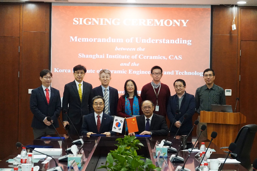 宋力昕对Yoo Kwang-Soo一行来访表示热烈欢迎。双方分别介绍了各自机构的基本情况、机构设置和学科优势等,并就共同感兴趣的研究课题进行了探讨。双方表示,两家科研机构在学科设置和研究领域等方面高度契合,希望在原有基础上进一步拓展和深化合作,共同推动科研人员间的合作交流与研究生间的联合培养。最后,宋力昕代表上海硅酸盐所与Yoo Kwang-So签署了《中国科学院上海硅酸盐研究所-韩国陶瓷工程与技术研究所合作备忘录》。