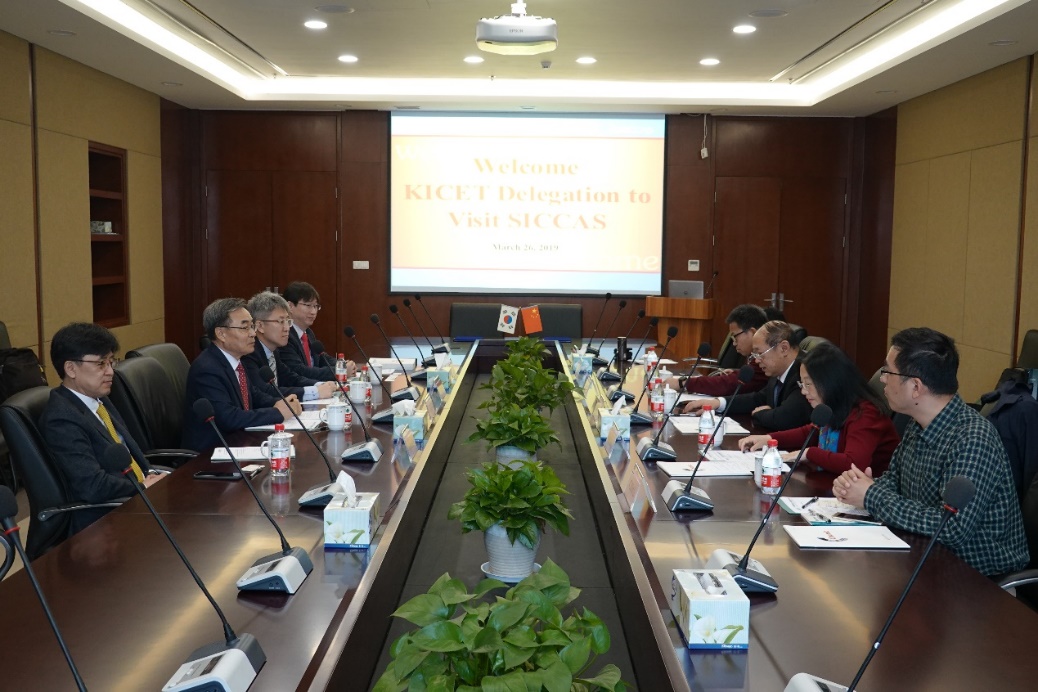 3月26日上午,韩国陶瓷工程与技术研究所所长Yoo Kwang-Soo一行4人到访中国科学院上海硅酸盐研究所,双方举行座谈交流并签署合作备忘录。上海硅酸盐所所长宋力昕出席,古陶瓷与工业陶瓷工程研究中心副主任李伟东,信息功能材料与器件研究中心副主任王根水,高性能陶瓷和超微结构国家重点实验室李驰麟研究员,能源材料中心占忠亮研究员等参加座谈交流。
