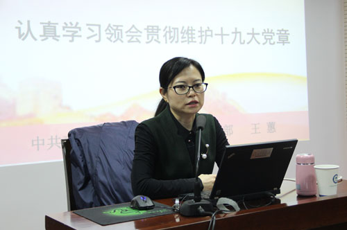 会上,中共青海省委党校党史党建教研部副主任王蕙副研究员应邀做了《认真学习领会贯彻十九大党章》专题辅导报告。王蕙从党章的地位、作用,十九大党章的修改及主要内容和认真学习领会贯彻维护新党章三个方面对党章进行了全面地阐释和解读。通过学习,与会人员充分认识到学习贯彻党章的重要意义,全面认识到党章集中表达了我们党的理论基础和政治主张,集中体现了我们党的整体意志和共同理想,为全党统一思想、统一行动、加强党性修养提供了根本标准,为从严治党提供了根本依据。只有把党章学习好、遵守好、贯彻好、维护好,才能凝聚起全党同志的意志和力量为实现党的理想和目标而共同奋斗。党才能有强大的创造力、凝聚力、战斗力,才能巩固党的执政地位,保持党的先进性,才能始终成为中国特色社会主义事业的坚强领导核心。