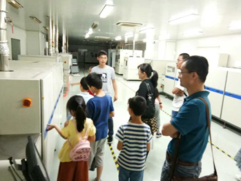 在嘉定园区,中试基地中试生产一线(BGO)的袁兰英高级工程师作了题为“BGO晶体与暗物质粒子探测卫星悟空的故事”的科普报告,报告以悟空的“火眼金睛”为切入点,用幽默生动的语言阐明了暗物质的特点和闪烁晶体的工作原理。在读研究生梁佳晟作了科普报告《体温就能发电》,并现场指导公众做了温差发电和热电致冷的实验。报告结束后,公众在志愿者的带领下,参观了绿色光电转换技术研发项目部、工业陶瓷课题组和中试生产一线(BGO)相关实验室,体验了互动科普装置。